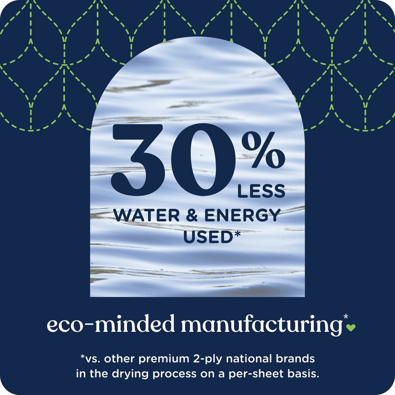 - We use energy-efficient manufacturing to save 30% more water & use 30% less energy vs. other Ultra national 2-ply brands in the drying process on a per sheet basis.