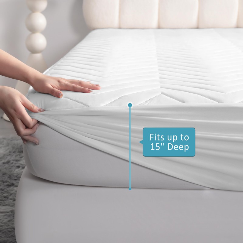Quilted Waterproof Mattress Protector - Full Size 15" Deep Pocket Fitted Sheet, Ultra-Soft Breathable and Machine Washable Mattress Pad Cover - White