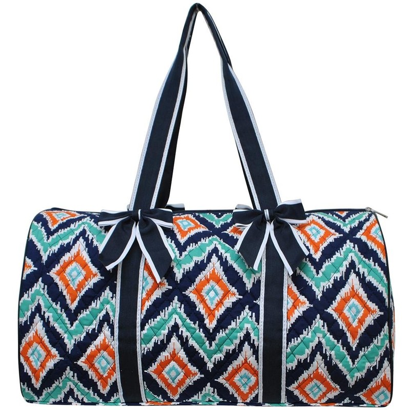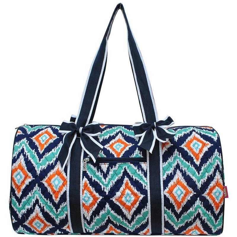 Quilted Weekend Travel Overnight 20" Large Duffle Bag II (MZM Ikat Navy Blue)