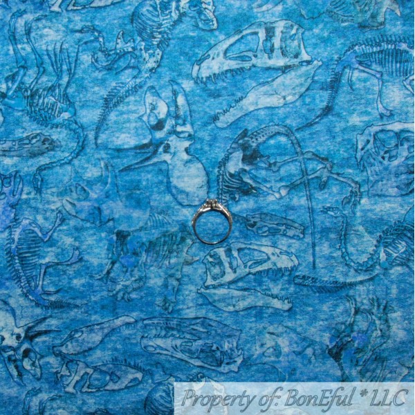 Quilting Treasures BonEful Fabric FQ Cotton Quilt VTG Blue Water Tonal Dinosaur Skeleton Skull Bone