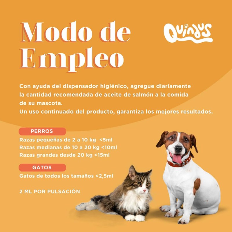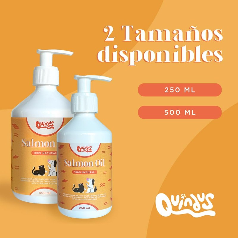 QUINDU'S - Salmon Oil for Dogs and Cats | Fish Oil with Omega 3 for Joints, Skin and Coat | Natural Anti-Inflammatory Agent | Compatible with Dry and Wet Food