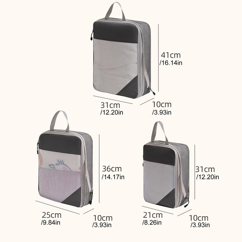 Compression Pack Cubes 3/4 Set, Compressible Packing Cubes with Laundry Bag, Travel Packing Cubes for Carry On Baggage. Material: Plastic Colour: as shown in the picture (Due to different monitors, there may be slight colour differences in the picture. Please make sure you do not mind before ordering. Thank you!) Package Weight:330g Package Size:20*17*3cm (Please allow 1-3mm tolerance due to manual measurement. Please make sure you do not mind before ordering.)