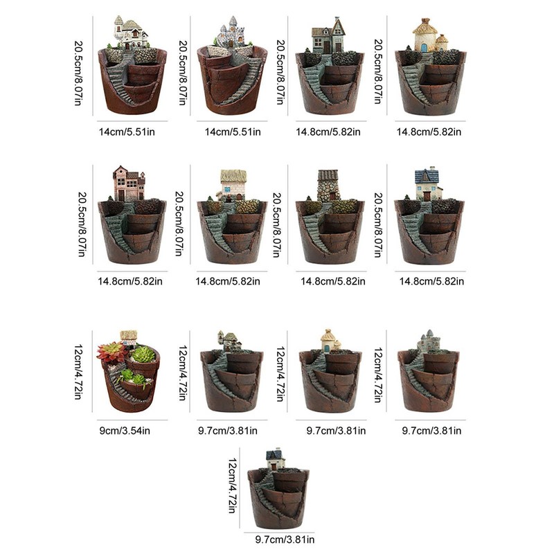 - House shape: the resin flower pot has the shape of a house and is processed. It looks really realistic and delicate and can be used as a decoration for your home, garden, office, etc. Can be used.