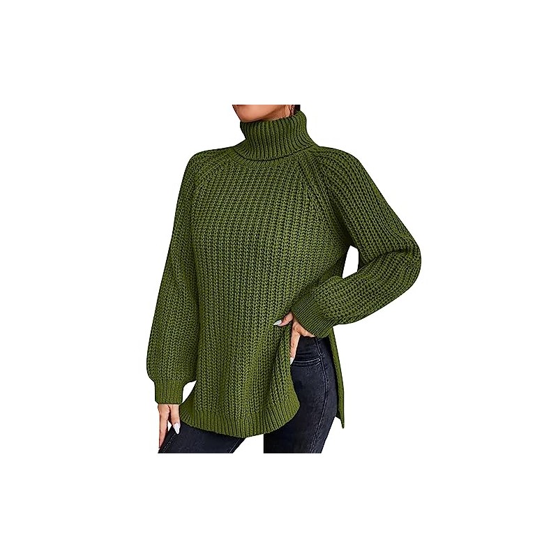 QUINTRA Loose Solid Color Sweater Medium Long Autumn/Winter Turtleneck Long Sleeved Knit Sweater Maternity Pullover Sweater (AA-Green, M)