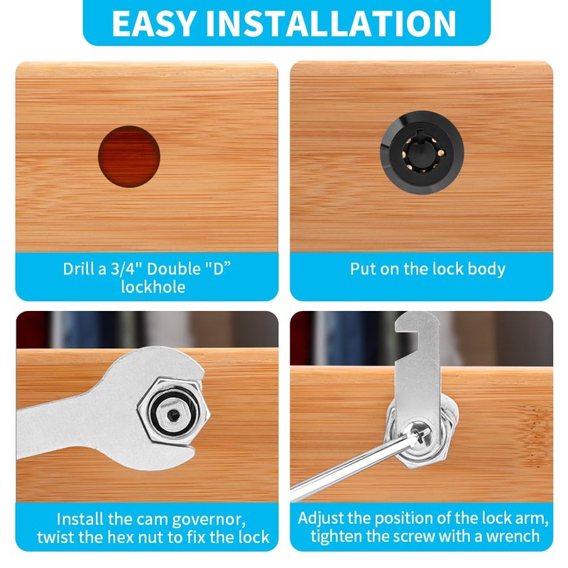 - 【STANDARD HOLE SIZE】It works for a standard mounting hole of 3/4 inch diameter. These locks provide enhanced privacy for personal belongings.Our cabinet locks are suitable for a variety of life scenarios, providing all-around security for your life and travel.