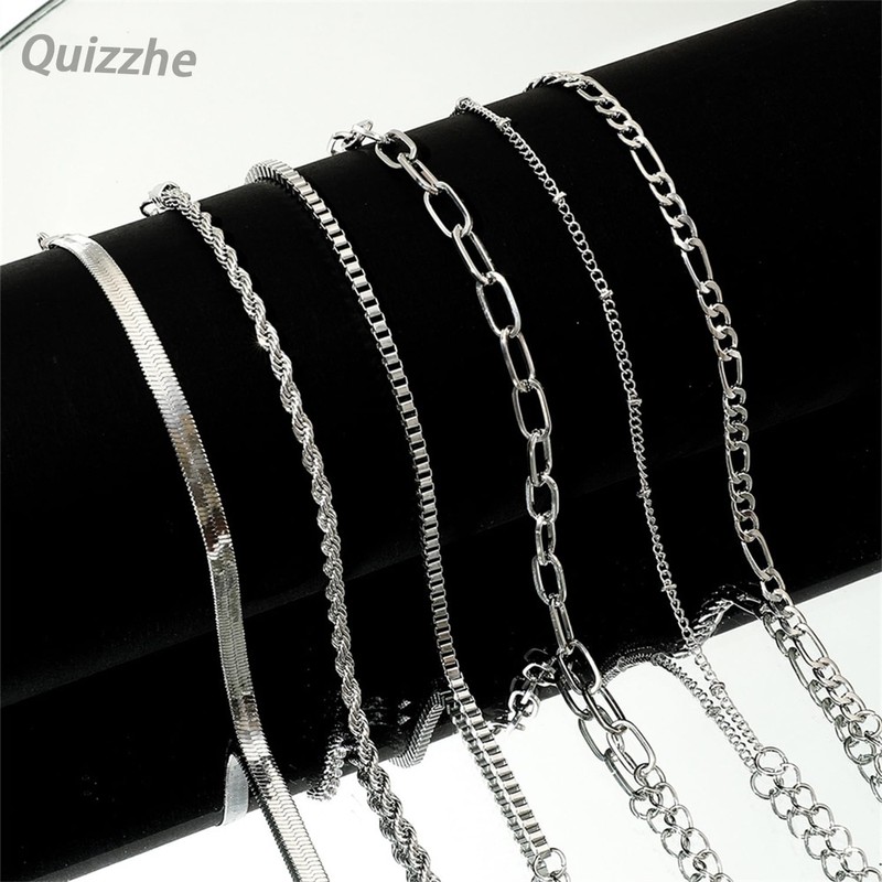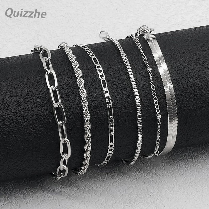 Quizzhe Boho Minimalism Silver Bracelet Dainty Gold Bracelet 6PC Classic Cuba...