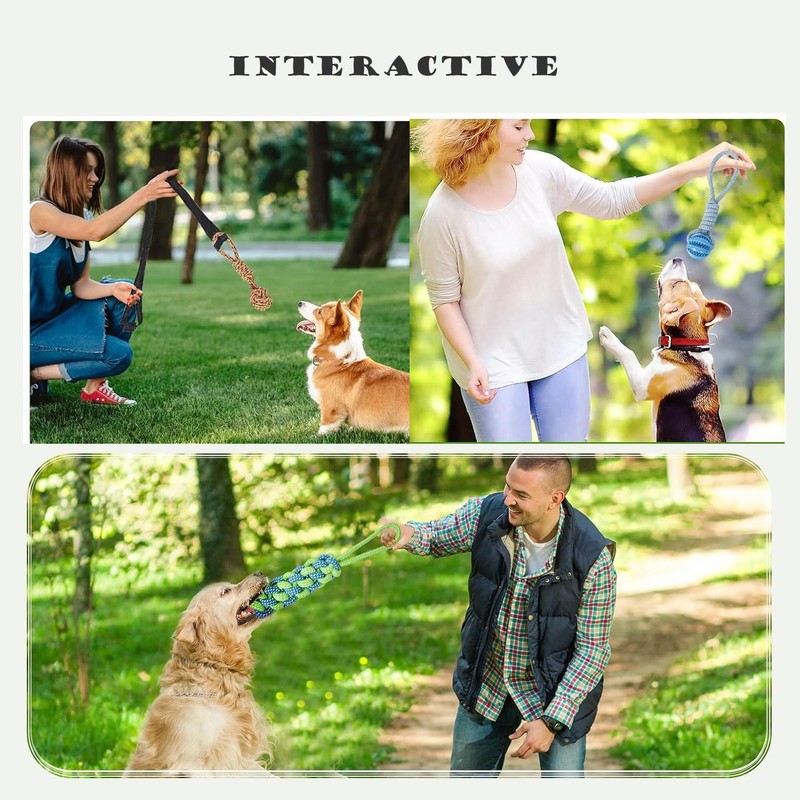 - 【Interactive Dog Toys】➽Our tether tug outdoor dog toy set with one pull rope and 3 chew ball toys.A very simple and effective indoor outdoor toy for high energy/aggressive dog breeds and chewers.Your doy will love this,durable rope Toys for chewing and playing ,it is perfect quiet toy for tug, toss and chew games and dental health.