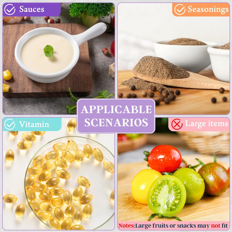 - 【MULTIPLE USES】: Our snack containers suitable for most lunch boxes, can be used to hold salad dressing, jam, peanut butter, condiments, etc. It can also be put in nuts and snacks, especially suitable for dining out. The sauce containers set can meet your various small-capacity and multi-variety needs. Suitable for kitchen, office, travel, picnics, barbecues, parties and more