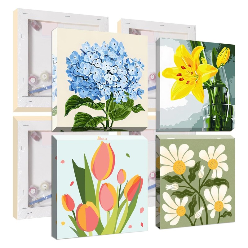 Qukle Framed Paint by Numbers Flowers, 4Pack Flowers Paint by Numbers Adults, Paint by Numbers Kits on Canvas DIY Oil Painting Acrylic with All Tools for Home Decor20x20cm