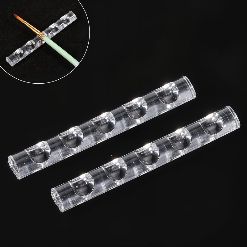Qulkws 2 Pack Crystal Bar Pen Holder Transparent Brush Holder Acrylic Nail Art Painting Pen Brush Stand Brushes Rest Makeup Brushes Organizer Holders for Drawing Pens Manicure Nail Carving Pencils