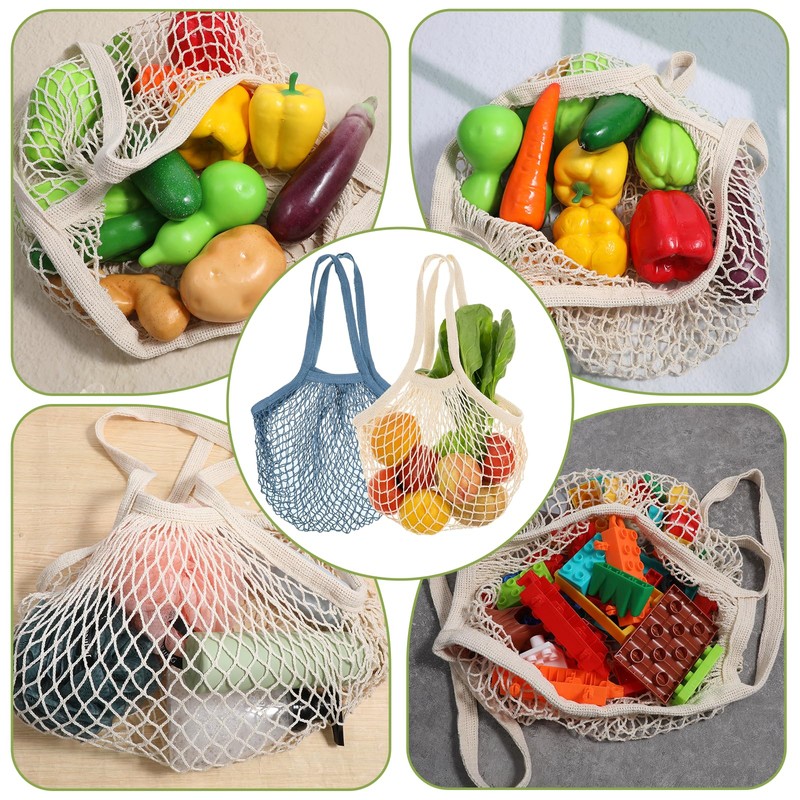 - Product Packaging: This product contains two reusable mesh shopping bags, one beige and one blue, to meet your daily life use and replacement needs