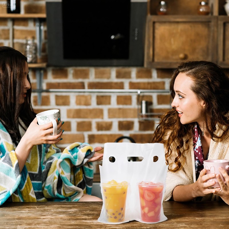 - WIDE APPLICATION: These drink poly bags are perfect for carrying coffee, tea, soda, juice, water, or milk, and are suitable for home, restaurants, bakeries, coffee shops, and more. The hanging hole design is convenient for carrying or hanging in the car.