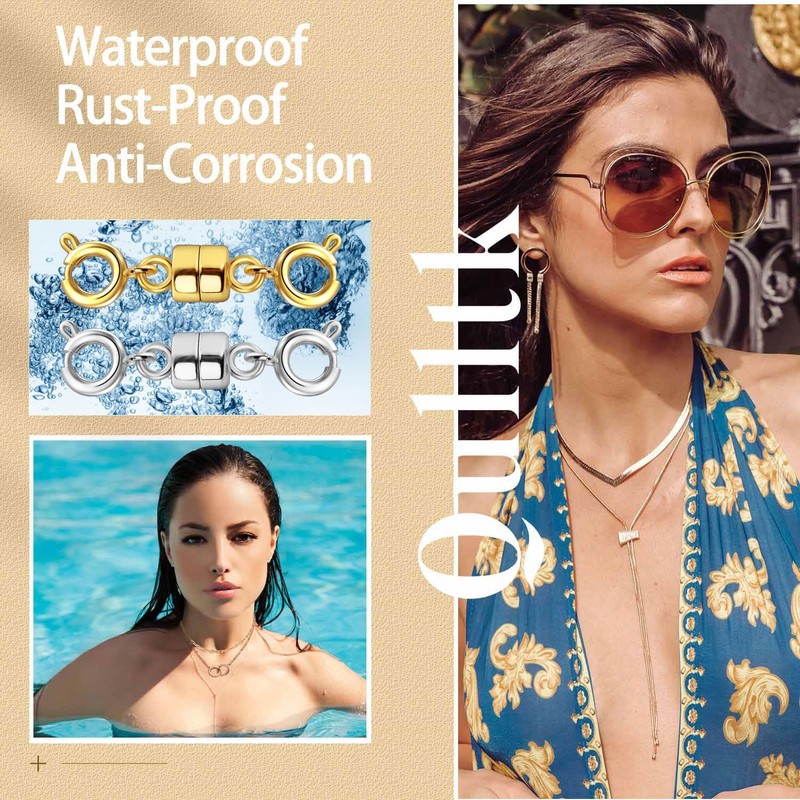 Qulltk Qulltk Double Magnetic Necklace Clasps and Closures 14K Gold and Silver Bracelet Extender Jewelry Clasps Converters for DIY Jewelry Making
