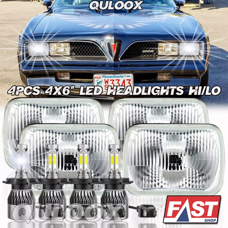 QULOOX 4pcs Fit Pontiac Firebird Trans AM 1977-1981 4x6" LED Headlights HI-LO...