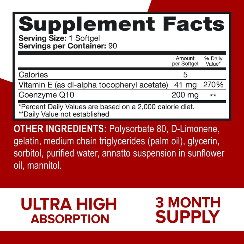 Qunol Qunol CoQ10 200mg Softgels, Ultra CoQ10 - Ultra High Absorption Coenzyme Q10 Supplements - Antioxidant Supplement for Vascular and Heart Health & Energy Production, 90 Count