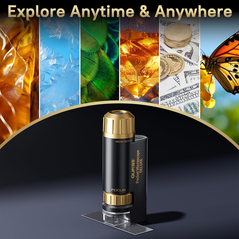 - Sophisticated Black and Gold Design: Our pocket microscope isn't just functional; it’s a statement piece. Featuring a sleek black and gold color scheme, this pocket microscope combines style with science, making it a fashionable and practical choice for learners of all ages.