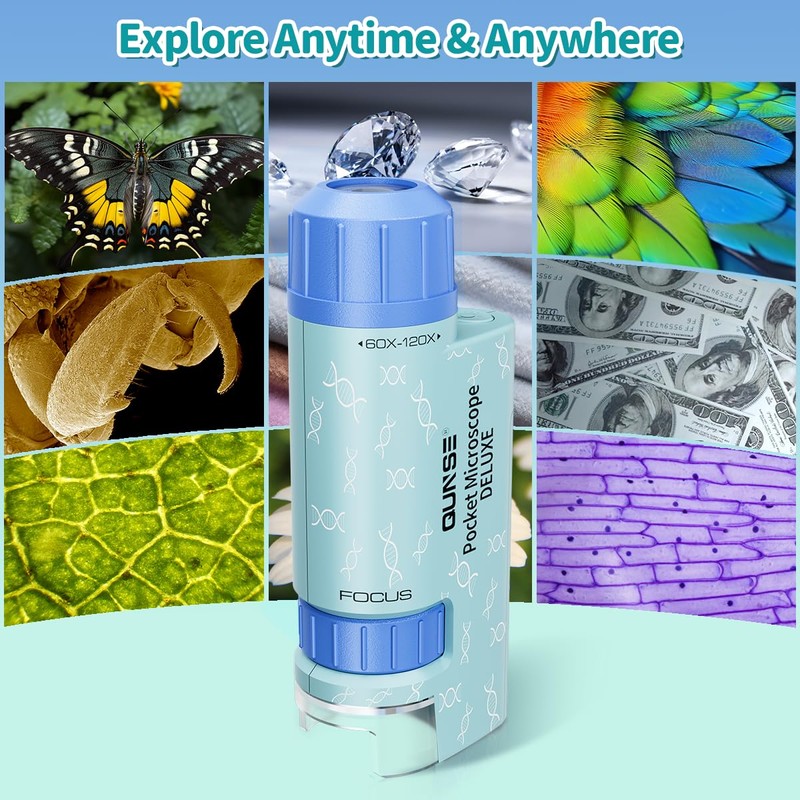 QUNSE Mini Children's Pocket Microscope for Children 60 x 120 x 5 Cuts with M...