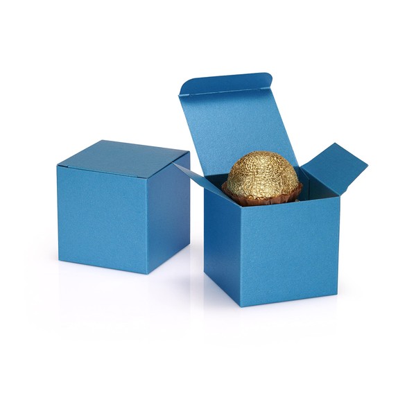 Quotidian Sky Blue Foldable Small Vintage Italian Pearlescent Paper Glitter Gift Boxes with Lids 2" x 2" x 2" (5 x 5 x 5cm) Pack of 12 - Cookie Bakery Candy Party Wedding Holiday