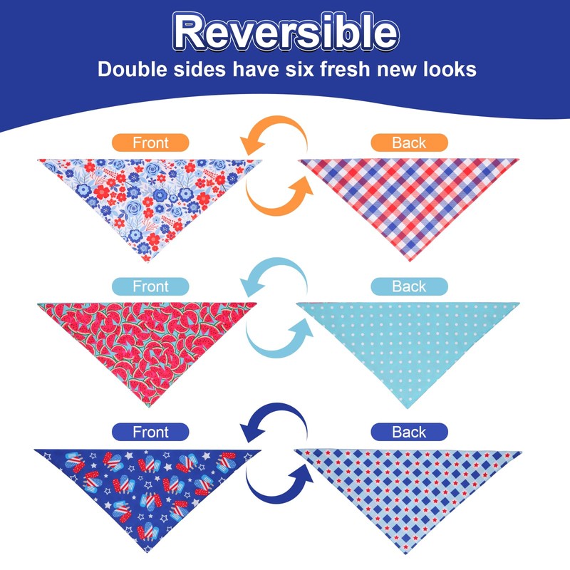 - Great Value: 2PCS Fourth of July dog bandanas, 1PCS Summer dog bandana, 3PCS dog handkerchief double sides have six fresh new looks, decor your pet with the funny bandana for all seasons and holidays