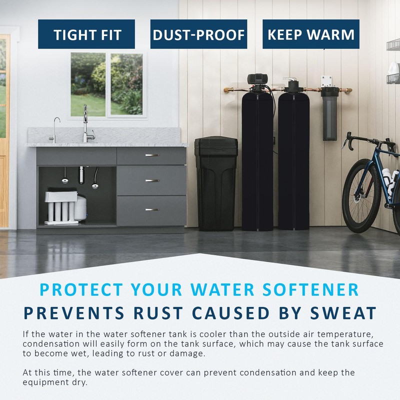 - Heavy-Duty Zipper: Our water softener cover features a premium waterproof zipper, allowing for easy installation and a tight, secure fit around your softener. A snug cover is key to preventing tank sweating, so be sure to compare your water softener's dimensions before purchase to ensure the best fit and optimal protection.