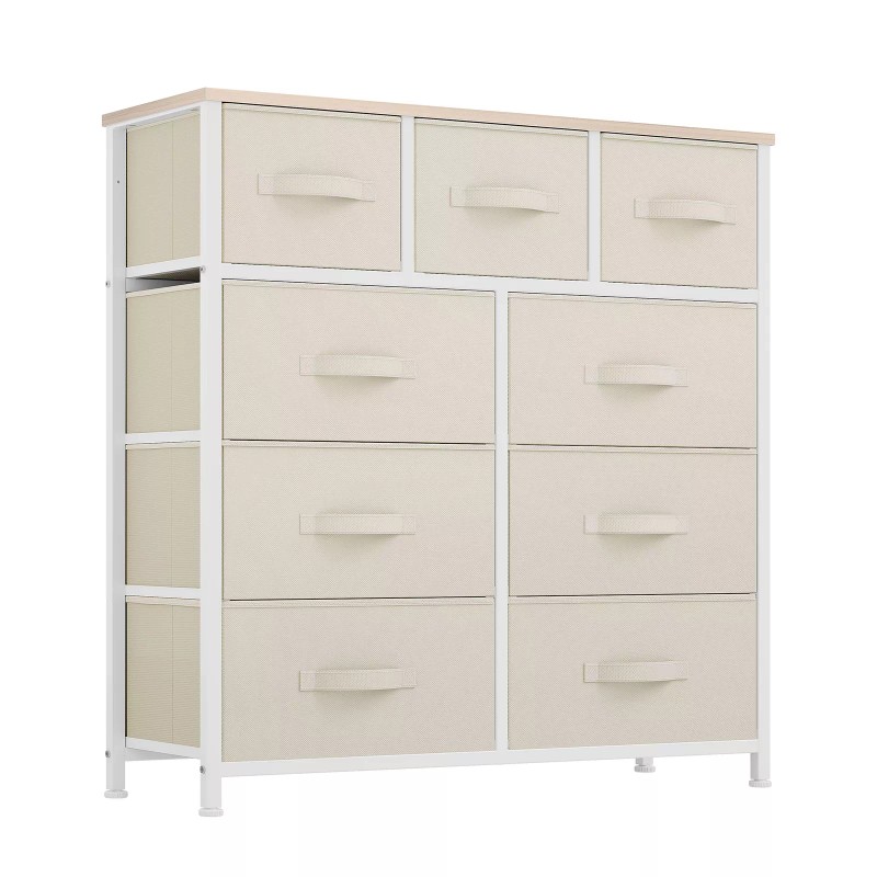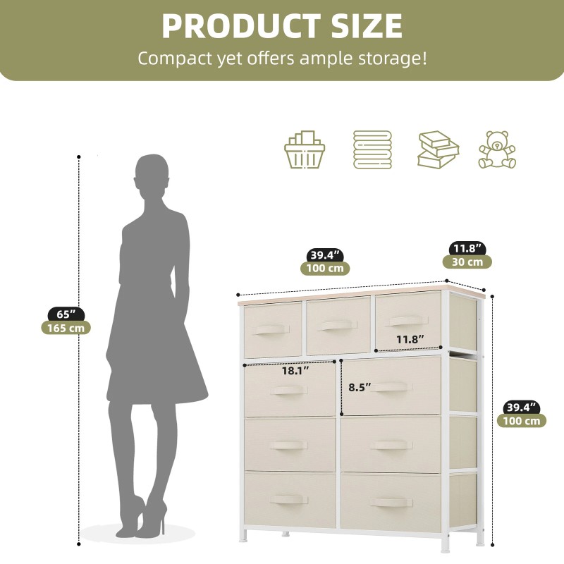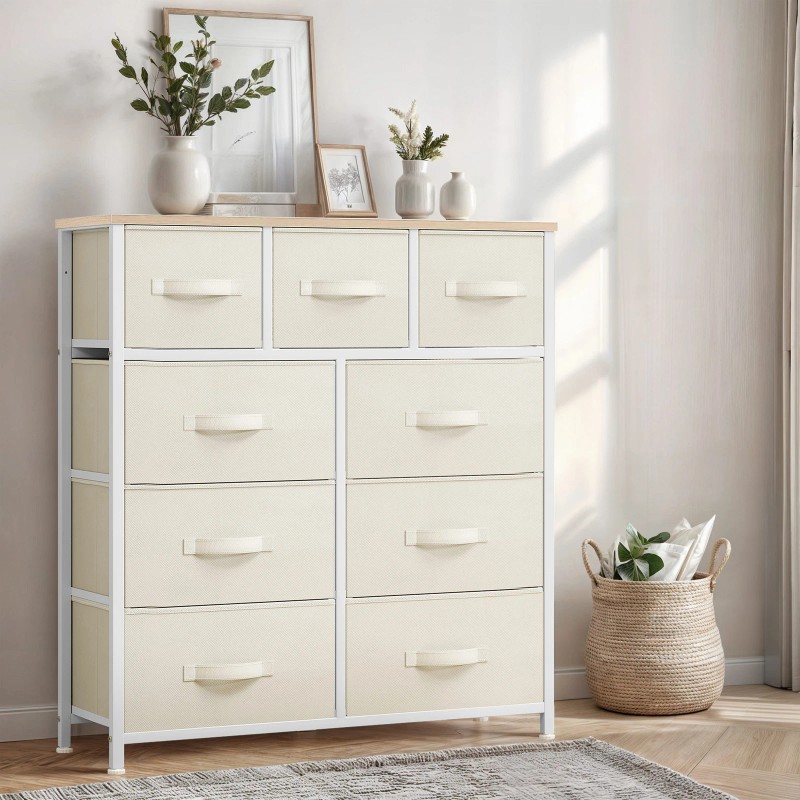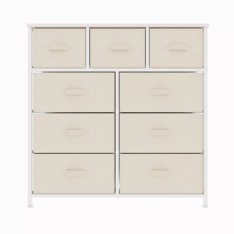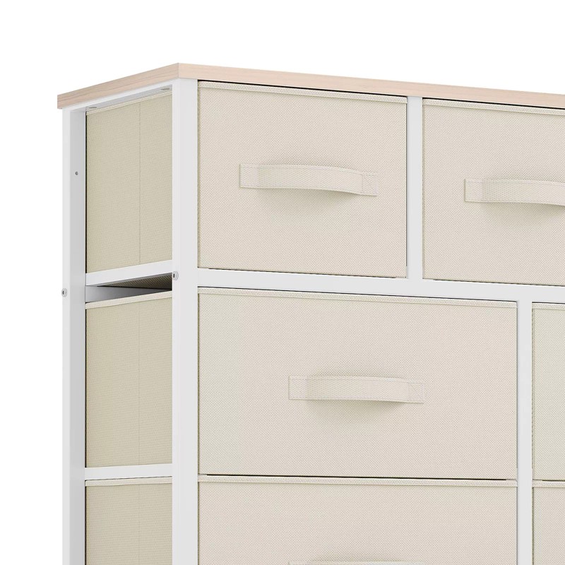 Qurious_corner 9 Drawers Dresser White Cream Fabric Tower Closet Chest of Cabinet Organizer