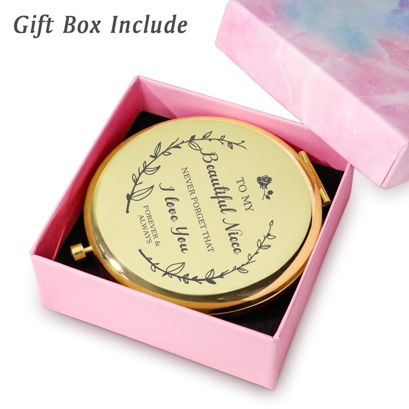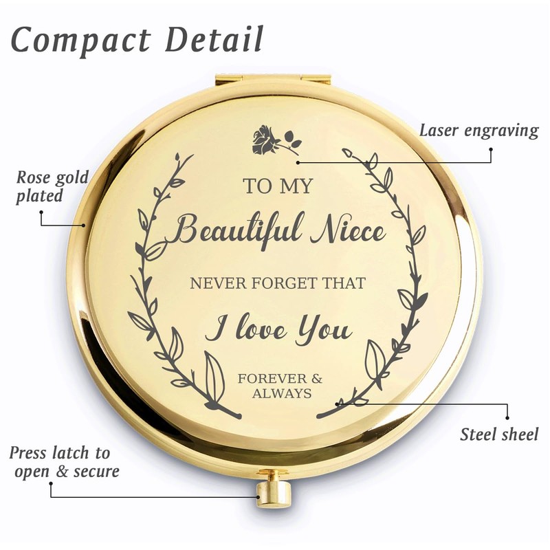 QUSTGO Niece Gifts from Aunt Uncle, Sentimental Mothers Day Birthday Gifts for Niece, Personalized Compact Mirrors, Custom Engraved Gift
