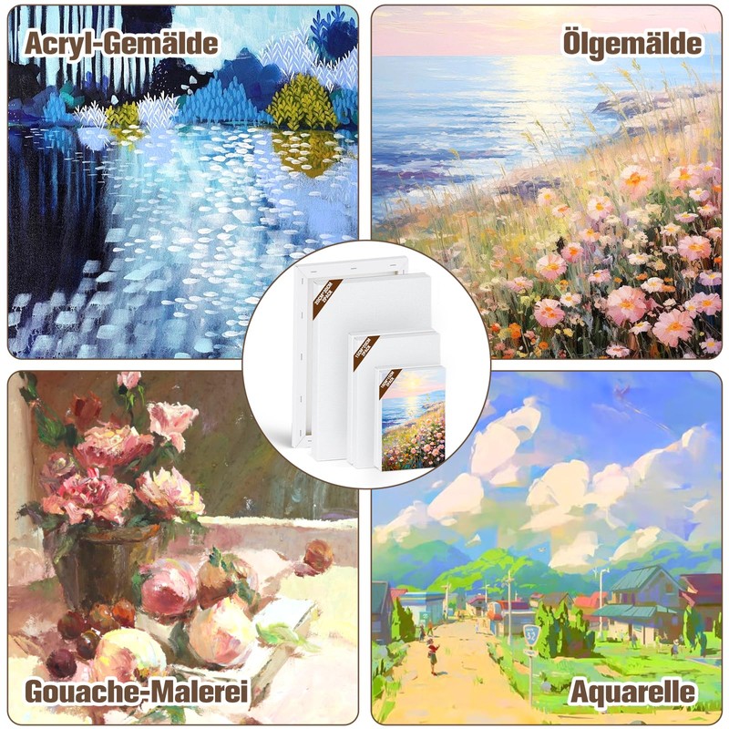 - Perfect for any occasion: Whether as canvases for art lessons, hobby painting or professional projects, this versatile canvas set is the ideal choice. The ready primed canvases for painting are ready to use and make a great gift for creative minds