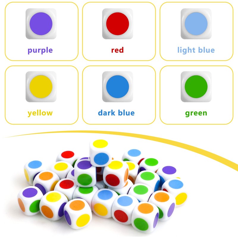 - 30 PIECE COLOR DOT DICE SET The practical set of 30 color dice is ideal for nurseries, homeschooling or cozy game nights with the family. The cubes are ready to use and require no preparation or instructions. Perfect as spare parts or for your own board game creations
