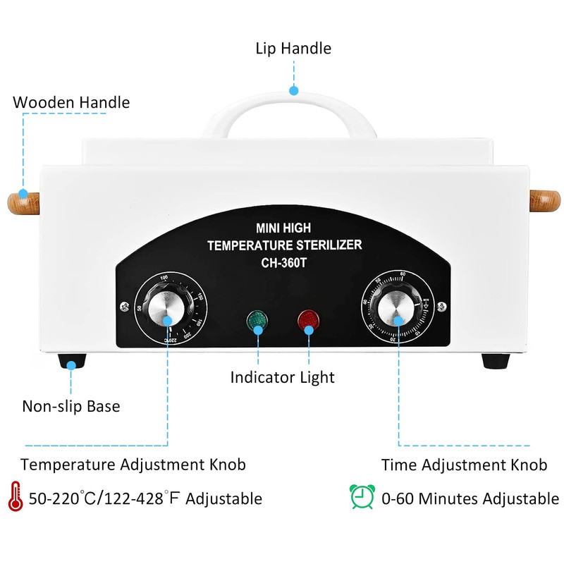 • 【Wide Application】This dry heat box is is a must equipment for laboratories, barbershops, beauty salons and home. Perfect for cleaning various types of stainless tools, such as nail tweezers, scissors, tableware, etc