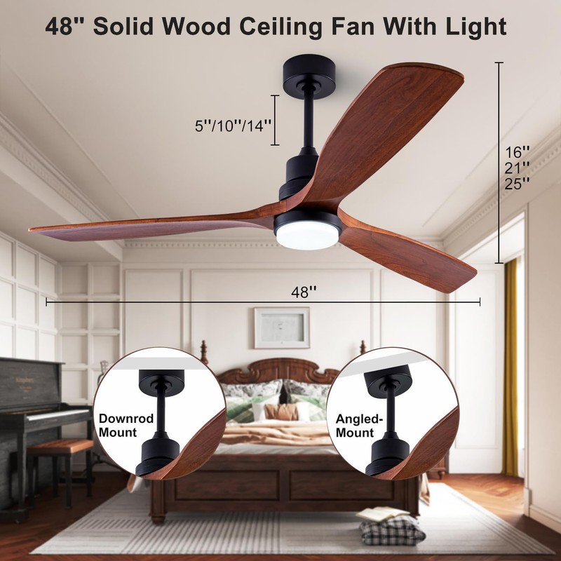 - QUIET CEILING FAN: 48-inch solid wood ceiling fan with low dry sound, maximum speed at 185r/min, decibel below 30DB, thus helping you whether in office or rest will be a pleasure.