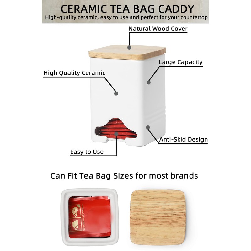 • PERFECTLY SZIE : This tea bag holder is perfectly adapt to the size of specialty bag brewing tea, Easily store up to 20,30 specialty tea bags