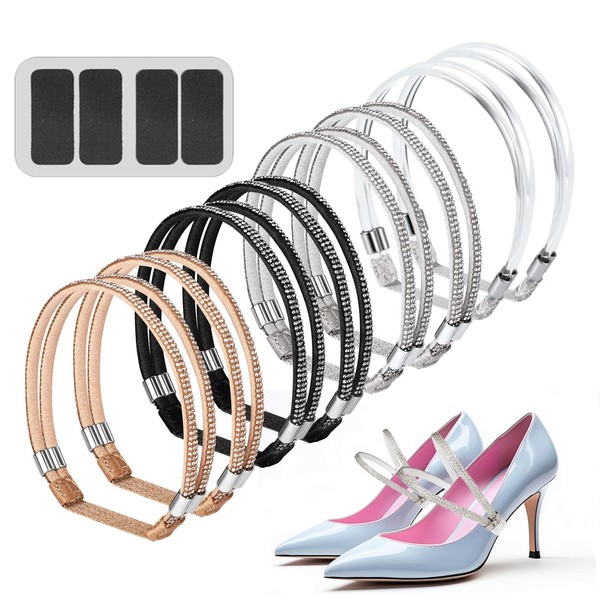 - 【Elastic High Heels Shoe Straps】: You will receive 4 pairs of high heels shoe straps in 4 colors (rose gold, black, silver,transparent), 8 pairs of stable stickers. Enough quantity and colors can meet your wearing needs.