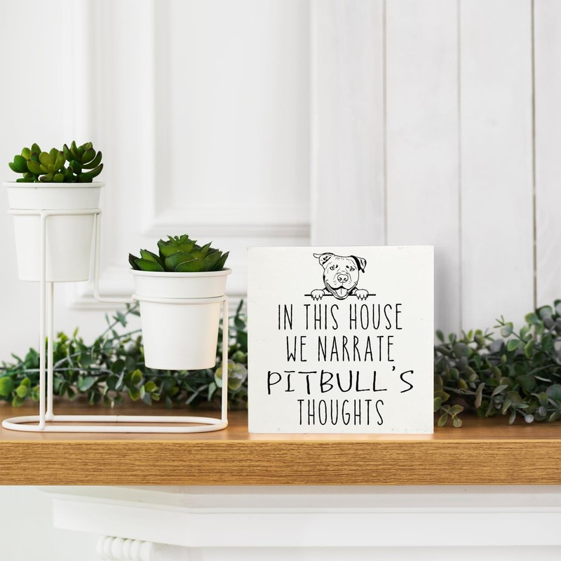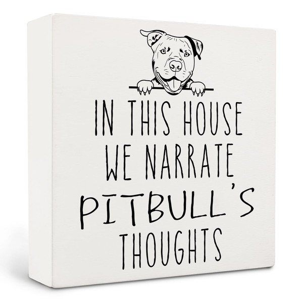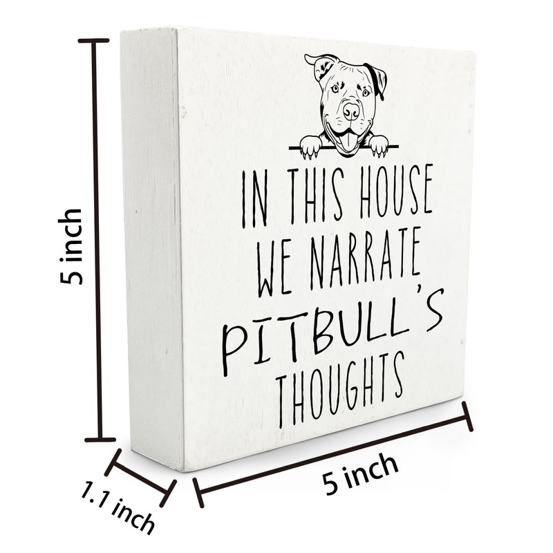 Qvapt Pitbull Gifts,Pitbull Signs,In This House We Narrate Pitbull'S Thoughts Decorative Signs,Pitbull Wooden Signs,Pitbull Desk Decor Sign 5 X 5 Inches,Pitbull Gifts For Pitbull Lovers
