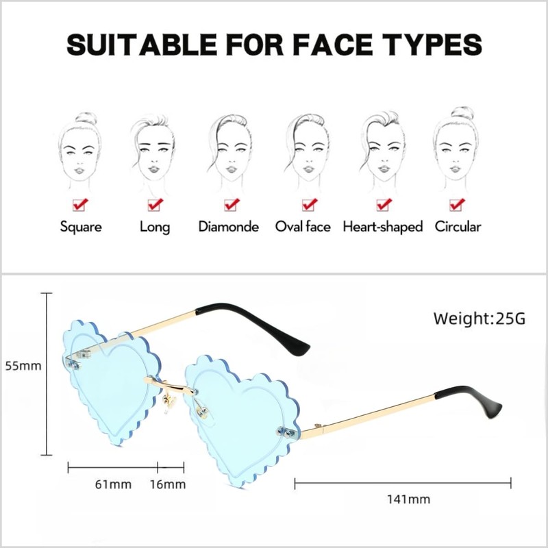 QVKUUT Stylish Irregular Rimless Heart Shape Sunglasses for Party and Dancing, lightblue