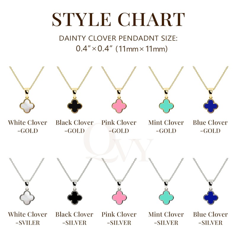 - The dainty clover pendant is made from mother of pearl. Each charm is carefully handpicked for its exceptional quality. You can choose pendant from various color of white, black, blue, pink, and mint green. It looks perfect with every outfit, express your unique style !