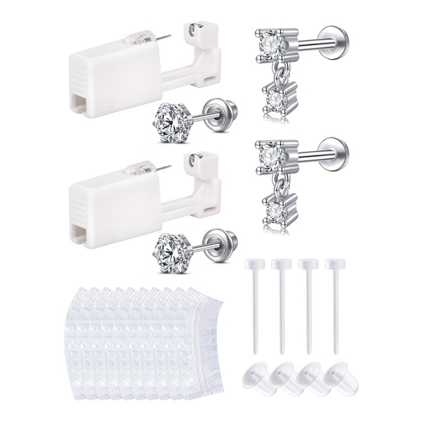 - Ear piercing gun kit include - 1pair silver disposable ear piercing kit with earrings + + 1pair silver stud earrings + 2pcs clean pad + 2pairs clear earrings studs + 5 pairs of disposable waterproof earmuffs