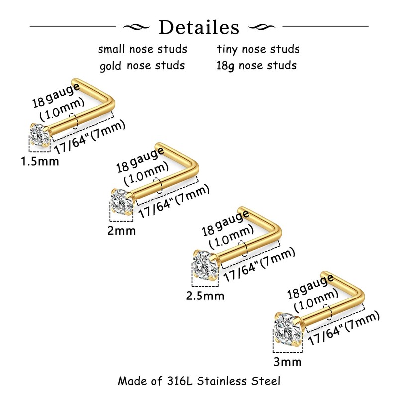 - Using: 18g nose studs stainless steel nose studs gold nose ring l shaped nose stud 18 gauge nose piercing studs l shaped nose studs small nose studs diamond nose studs for women nose ring studs surgical steel l nose studs