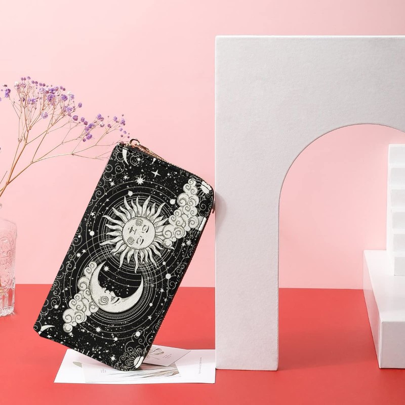 Qwalnely Moon Wallet PU Leather, Moon Purse Phone Money Credit Card Holder