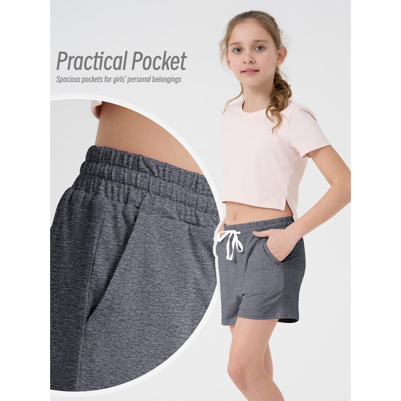 • 【Drawstring and Pocket Design】: Girls' running shorts have two convenient pockets for storing small items,drawstring belts can also adjust the waistband size to fit girls.