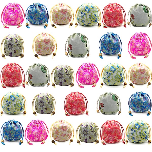 QWERTYUILLL EAVOQLB 28PCS Brocade Bag Peony Flower Bag Drawstring Double Drawstring Jewelry Bracelet Bag Coin Bag
