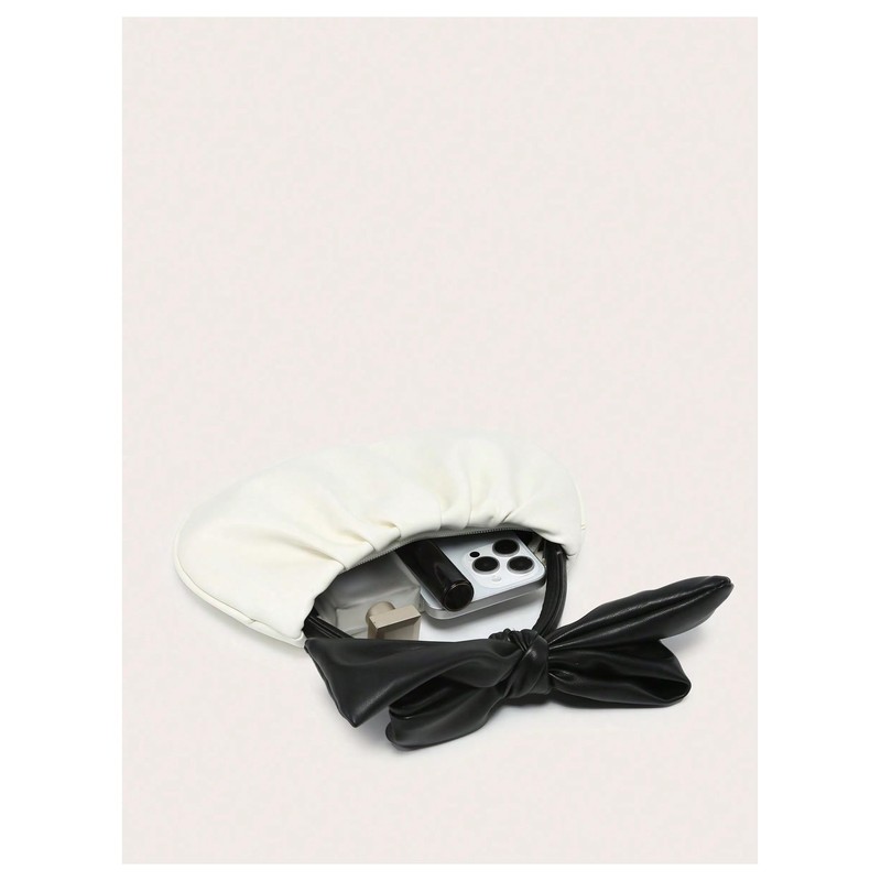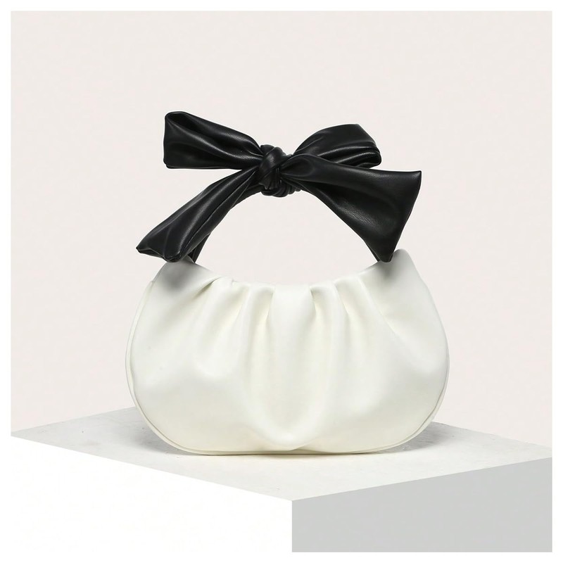 QWINEE Women's Y2k Clutch Purse Bag Bowknot Dumpling Pouch Bag Mini Top Handle White One Size