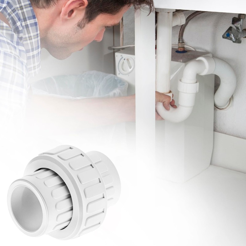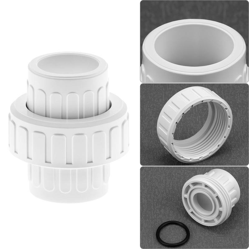 QWORK 1-Inch PVC Union Coupling, 6 Pcs Furniture Grade Pipe Fittings, Leak-Proof with EPDM O-Rings, UV-Resistant & Impact-Proof, White
