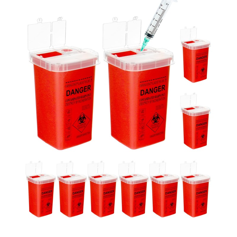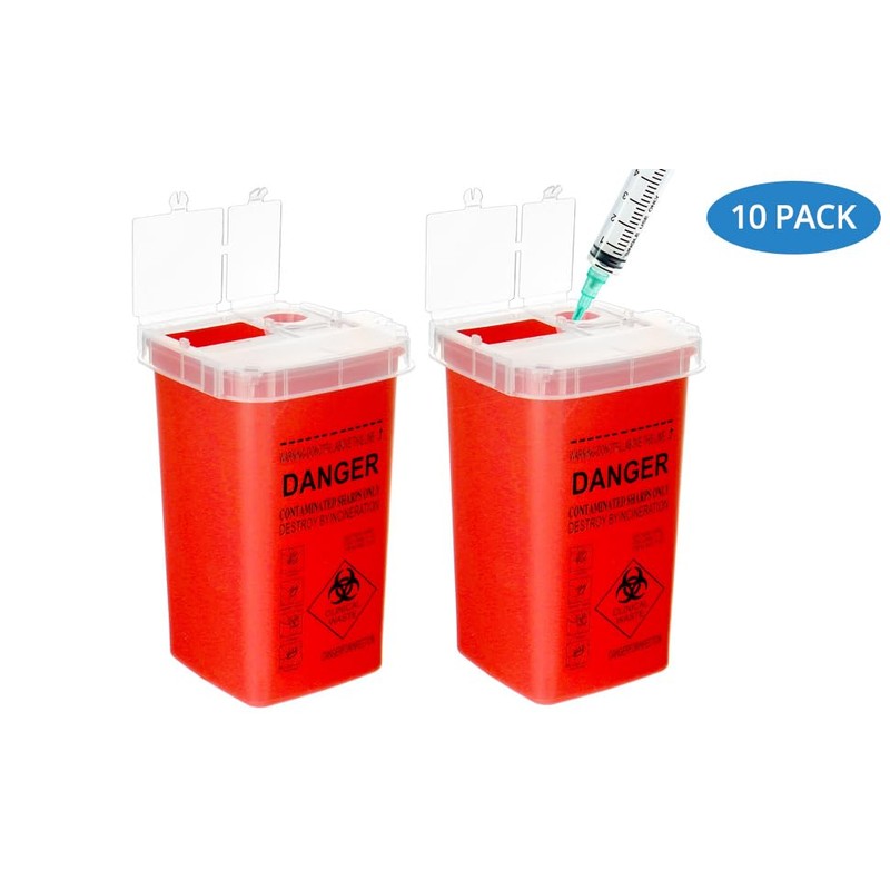 - Large Quantity & Portable Size: Pack of 10 sharps containers, each with a 1-quart capacity and measuring approximately 6" x 4" x 3", offering lightweight convenience for various professional settings and portable enough for travel needs.