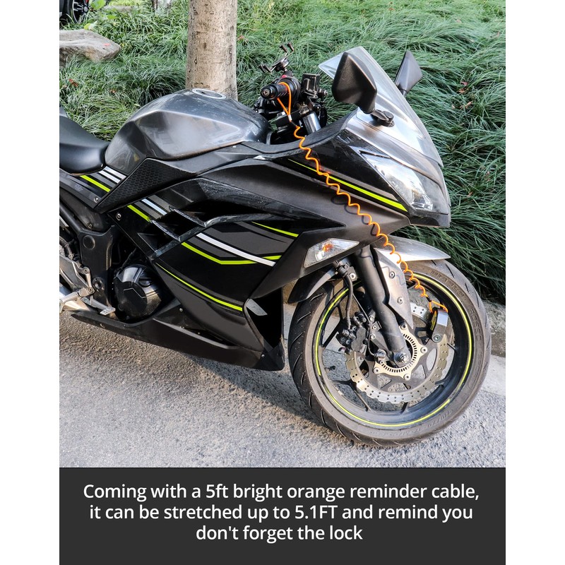 • A 5FT Reminder Cable: Coming with a 5ft bright red color and orange reminder cable, it can be stretched up to 5.1FT and remind you don't forget the lock .