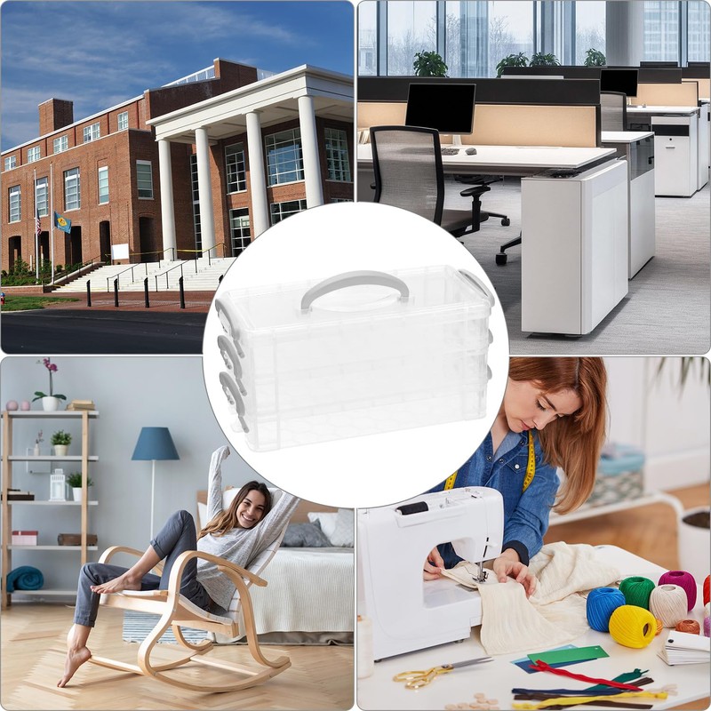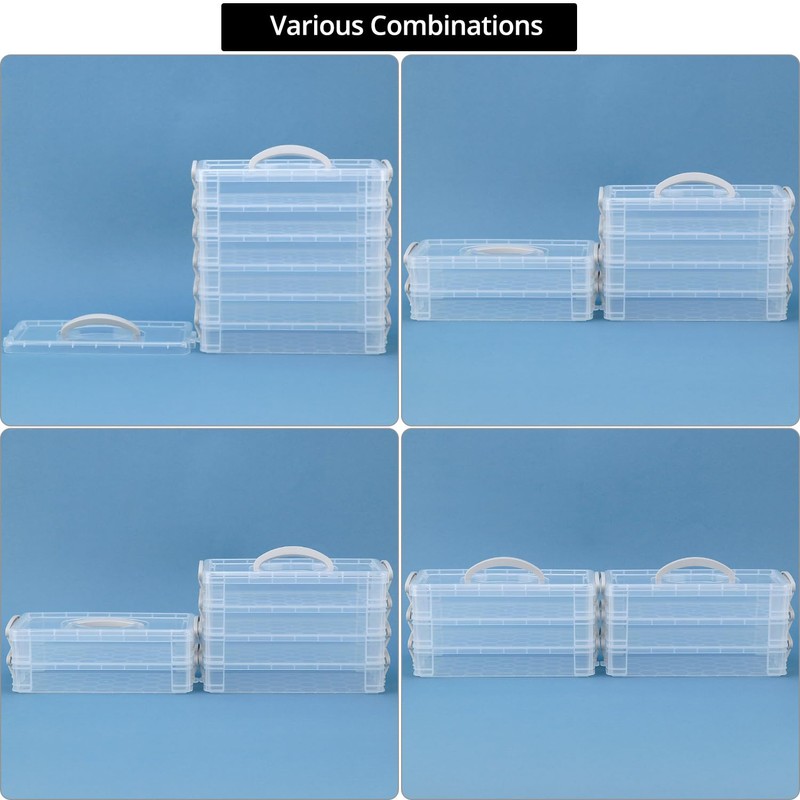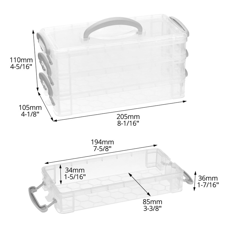 - Includes 2pcs 3-tier storage boxes with removable lids and snap-on locking clips,