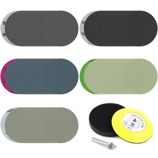 - Versatile Assortment: This comprehensive set includes 100 Pcs of 3-inch silicon carbide sanding discs in assorted grits (800, 1000, 2000, 3000, 5000).