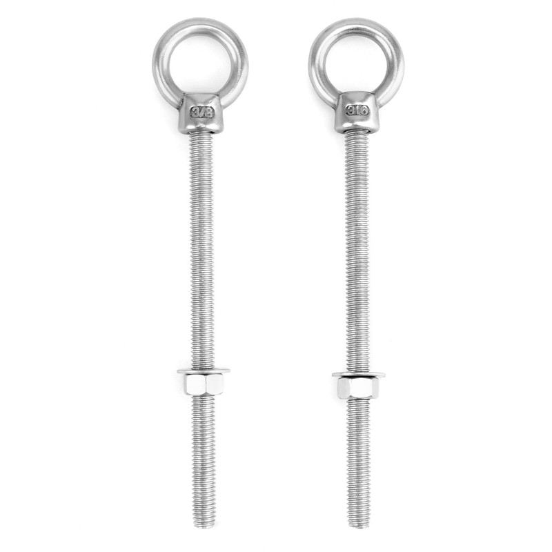 QWORK 316 Stainless Steel Machinery Eye Bolt with Shoulder, 5 Pack 3/8" x 6" Long Stainless Steel Marine Grade Shoulder Eye Bolt, Threaded Eyebolts, WD30279