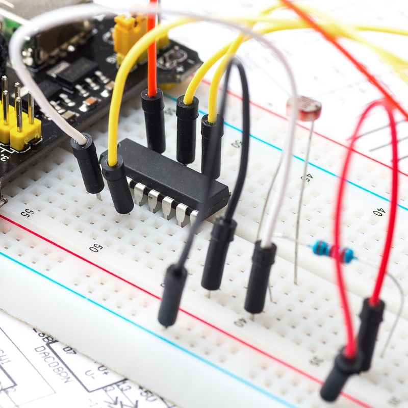 - Extensive kit: contains about 420 components, including a power module, ceramic capacitors, jumpers and a breadboard with 830 connection points.