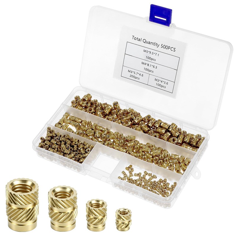 - 4 SIZES: Contains 500 knurled nuts: 100x M2, 200x M3, 100x M4 and 100x M5, ideal for a wide range of applications.