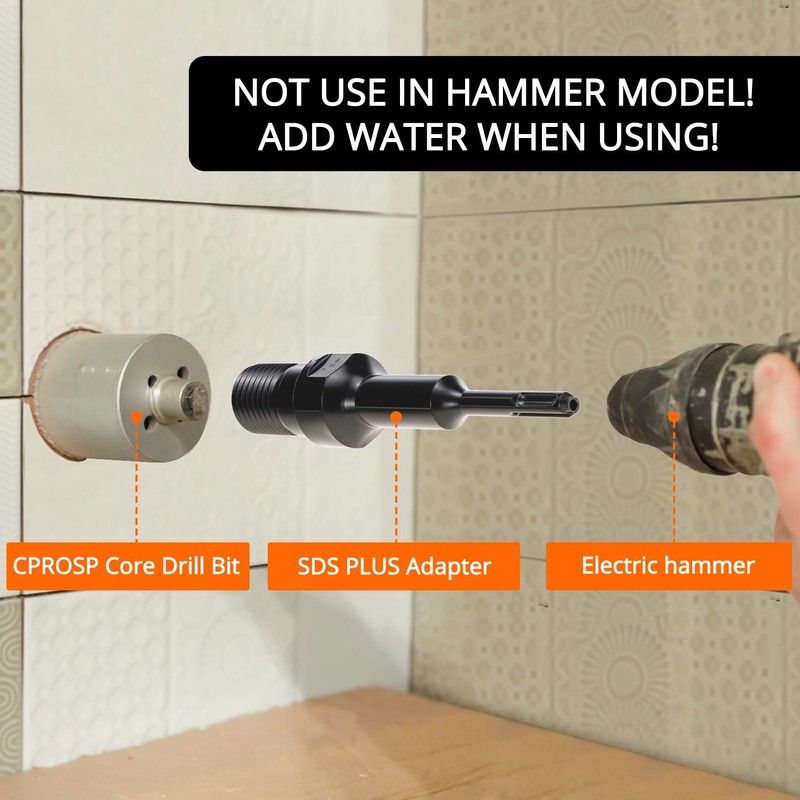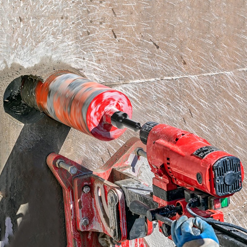 - Thanks to the quick and effortless installation of the adapter, the hammer drill becomes a diamond core drill.